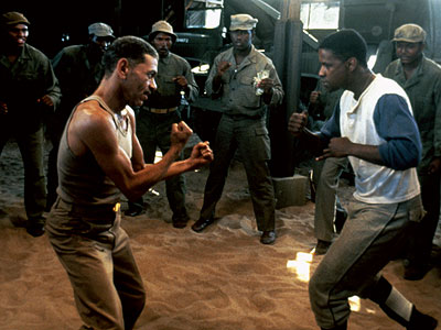 Den-ZELLLL, Glory (1989): Denzel Washington was here two year before, for Cry Freedom, and in Glory, he manages to steal the spotlight from his fellow nominee in 1987, Morgan Freeman. Private Trip is the PERFECT STORM of Denzel mannerisms. This is the role you go to if you want to perfect your Den-ZELLLL imitation. His vocal “heh-heh’s,” his righteous indignation, his puffed up pride, his brooding and his “so you’re tellin’ me” verbal sarcasm—they are ALL HERE. Unlike some of his later performances, where the Denzel-ness borders on parody, here it’s perfect. Pauline Kael, who disliked Washington’s performance and called it overly telegraphed, was absolutely wrong here. But I can’t help think of her complaint when I watch Denzel slum his way through movies he shouldn’t have taken in the first place. But Glory is a must-see, and this may be Washington’s best performance. My score: A.